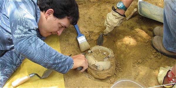 Una pieza de cerámica que tendría entre 2.500 y 3.000 años de antigüedad fue hallada por arqueólogos mientras excavaban el terreno donde se construye el Canal Parque Gabriel García Márquez,